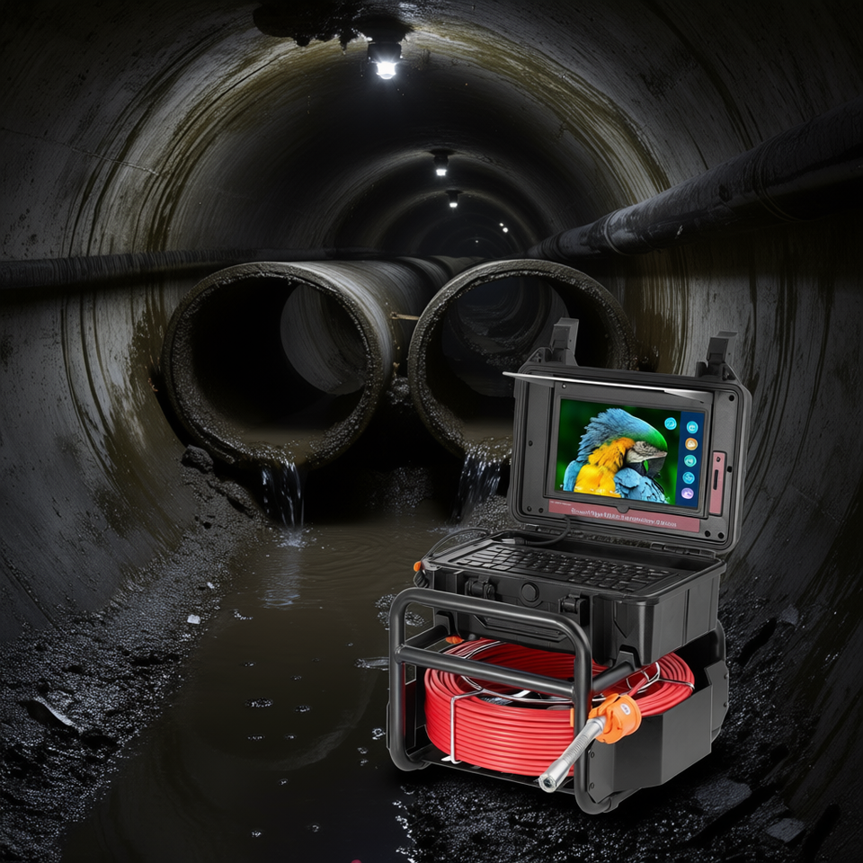Telecamera per ispezione tubi da 165 piedi con touchscreen da 10,1 pollici, autolivellante, per ispezione fognature, con compressione video H.264, IP68