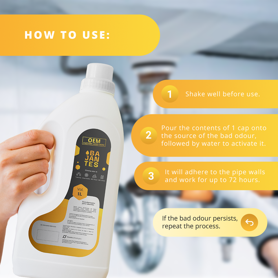 Neutralizzatore di Odori per Tubi di Scarico Formula Gialla: Odori di Scarichi, Fognature, Urina e Feci - OEM