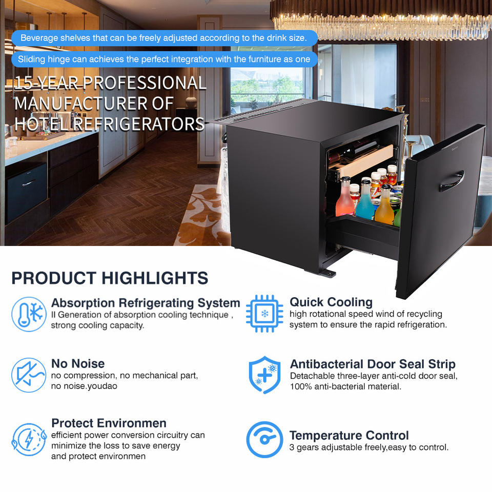 Frigorifero Minibar a Cassetto XC-50A, Piccolo Formato in Acciaio Inox, Sbrinamento Automatico, Efficienza Energetica, Portatile, Capacità 50L