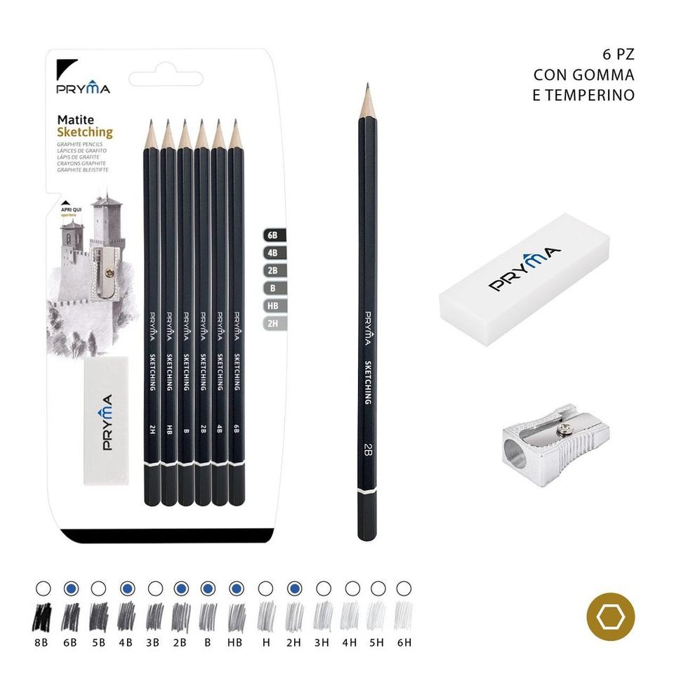 Drawing Pencil with Eraser + Sharpener 8 Pieces - Art Supplies