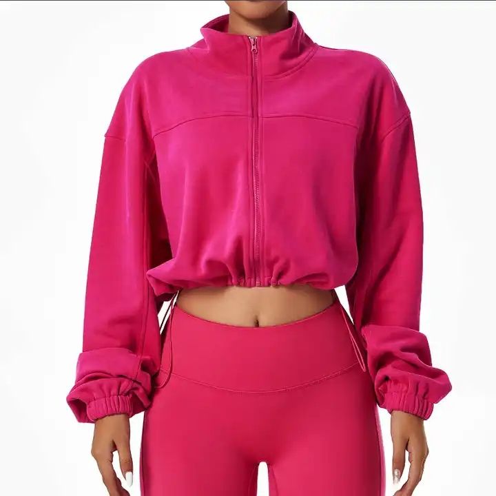 Nome del prodotto:Felpa da allenamento Crop con colletto con Zip da donna