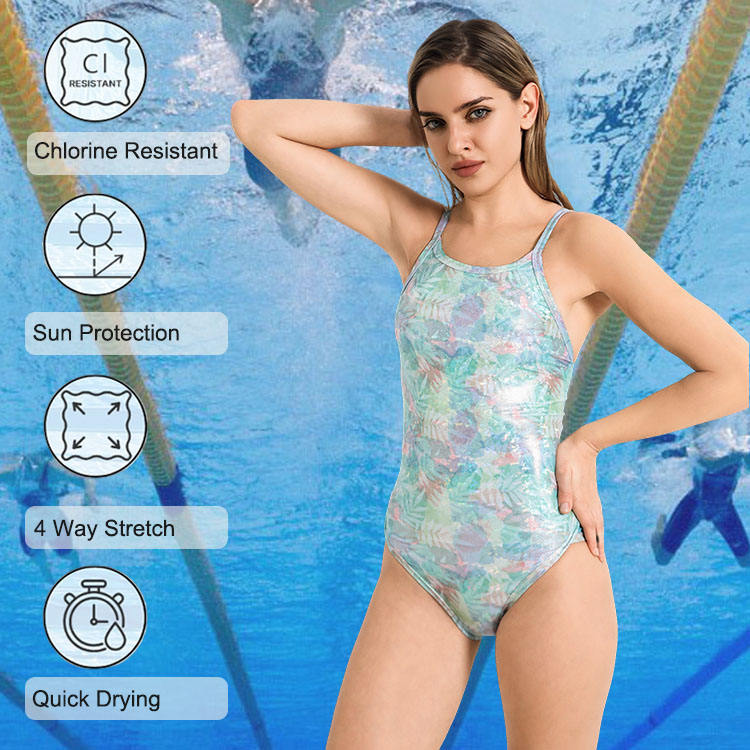 Costume da Bagno da Gara Professionale Dream Green con Schiena Aperta per Donne, Asciugatura Rapida, Stampa Personalizzata, Ecologico e Rimovibile