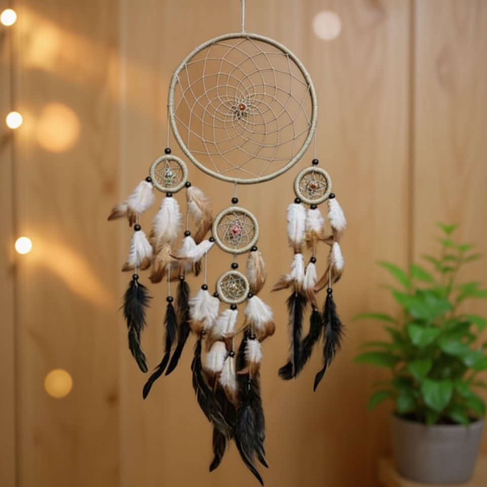 Acchiappasogni Artigianale 20x80cm con Piume e Perline per Decorazione Murale