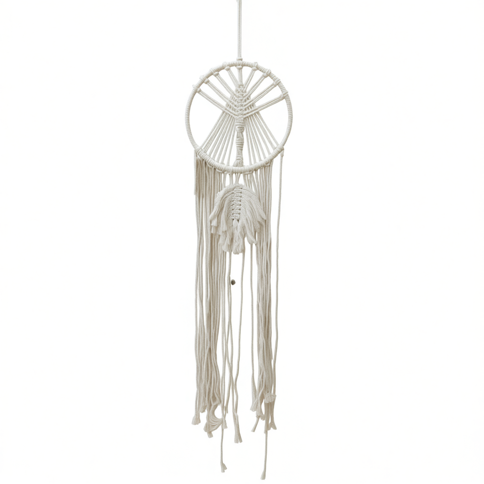 Acchiappasogni Bianco in Macramè da Parete 20cm Decorazione per la Casa