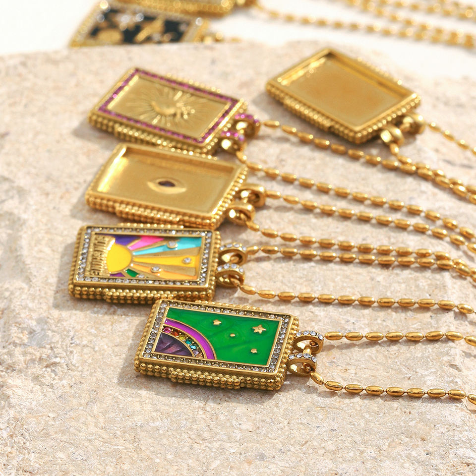 Set di Collane a Catena Dorata Dreamidea con Ciondolo Quadrato Smaltato Gioielli Boho Chic da Festival Accessorio Trendy di Tendenza per Donna