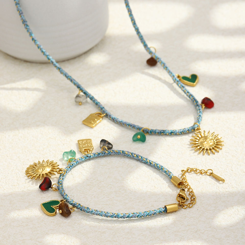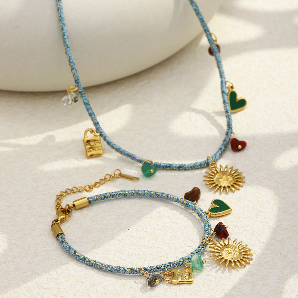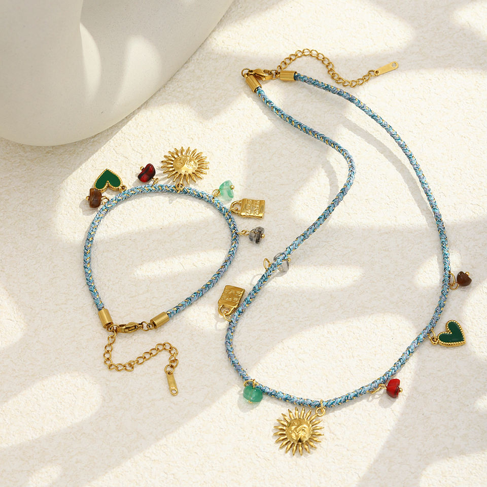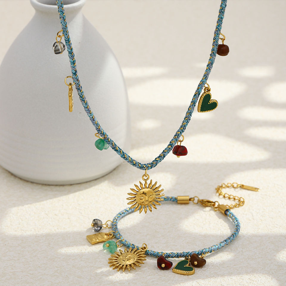 Set di Gioielli Dreamshow con Ciondolo Sole, Collana e Bracciale Fatti a Mano con Catena in Corda per Donna