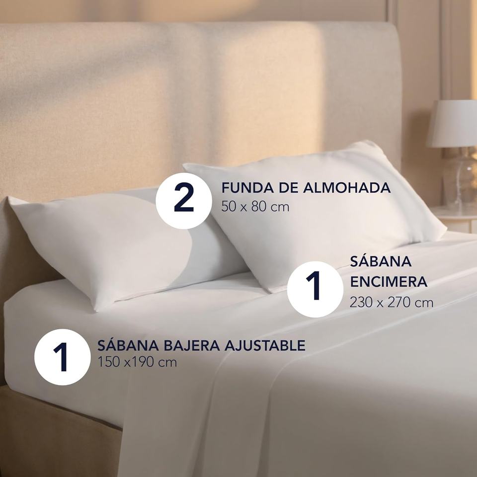Dreamzie Sabanas 150x200cm Set 4-Microfiber Brushed Polyester 200TC Modern Countertop Bed Sheet Set 2 Pillow Covers (White