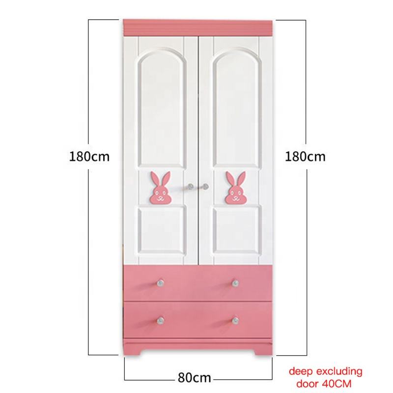 Dressing Room Furniture Modern Design Cheap Price Custom Wooden Closet with Drawers pink Simple Children Wardrobe for Girls
