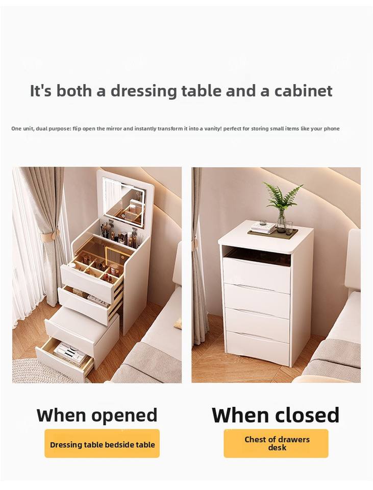 Toeletta dal Design Moderno Multifunzionale con Piano Ribaltabile, Piccolo Mobile Contenitore e Set Tavolo da Trucco con Specchio
