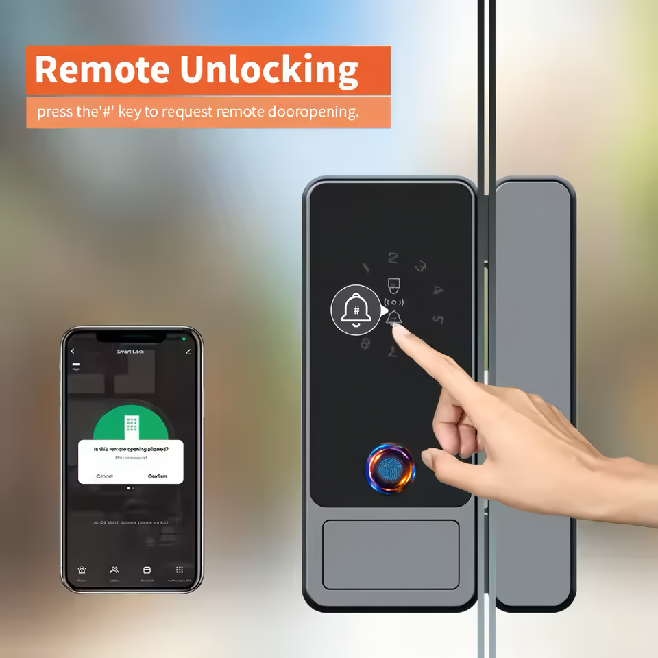 Serratura Biometrica WiFi Tuya Senza Foratura con Impronta Digitale e Scheda Chiave per Porte Scorrevoli in Vetro da Ufficio - Controllo Accessi