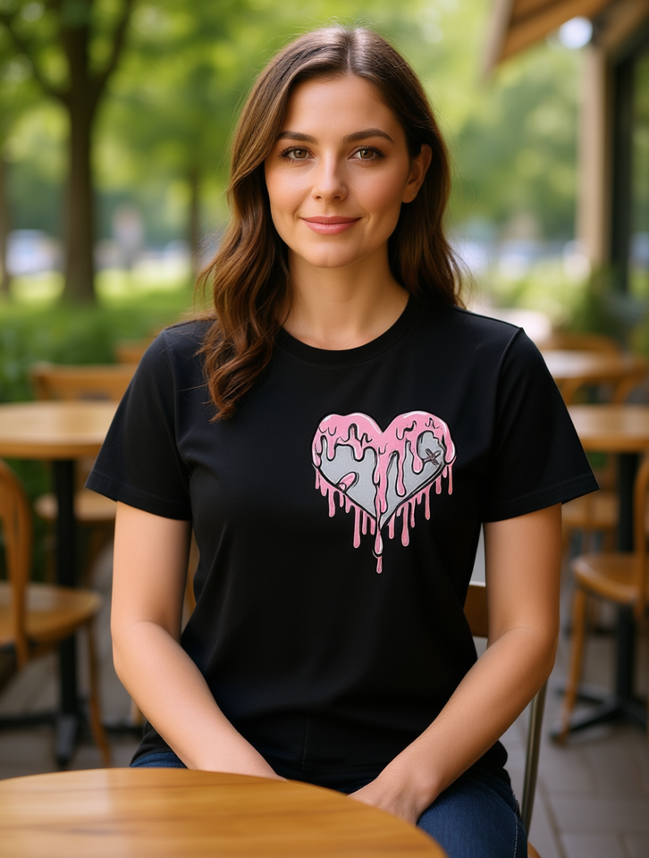 Dripping Heart Printed T-Shirt Women Pure Cotton Short Sleeve Crew Neck Casual Style Machine Washable Regular Fit