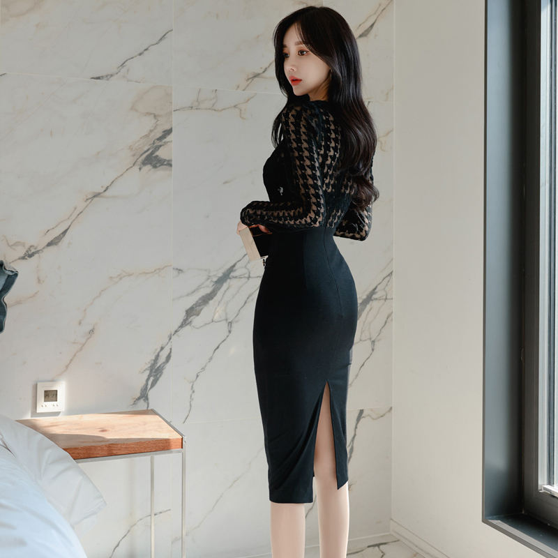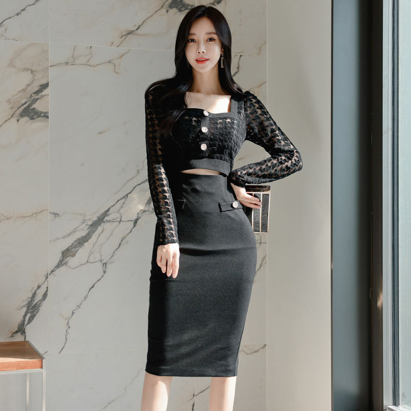 Droma 2025 Spring Fashion Temperament Elegant Slimming Black Sexy Lace Women Two Piece Skirt Suit High Quality