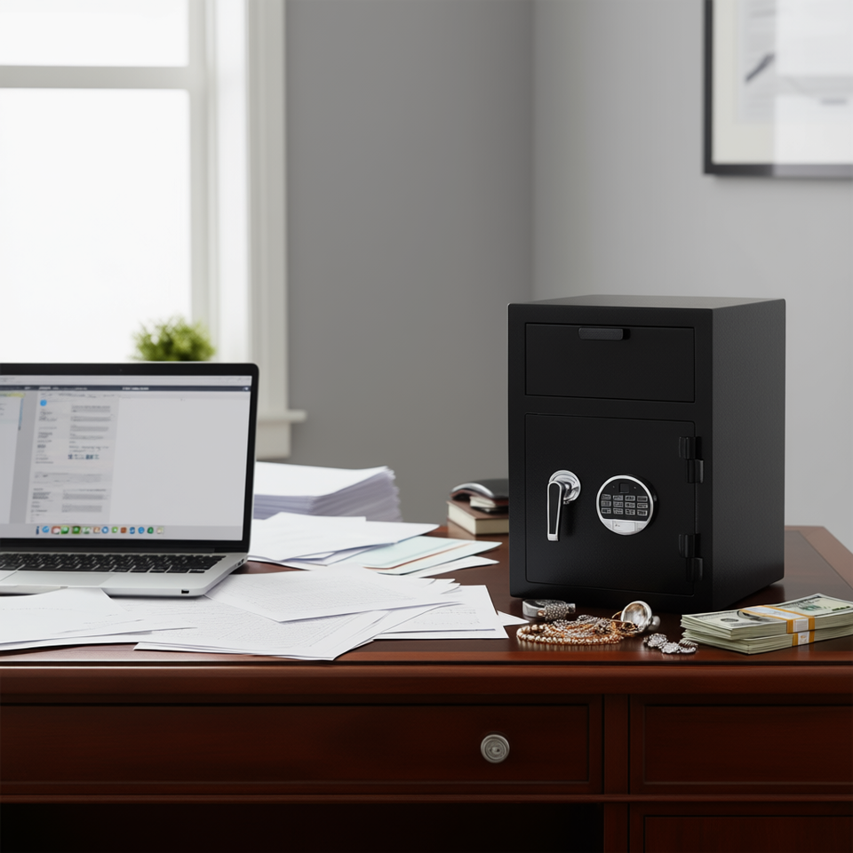 Cassaforte Drop Safe da 1,2 Piedi Cubici con Tastierino Digitale, 2 Livelli, per Deposito Contanti, Gioielli e Documenti, in Acciaio Verniciato a Polvere