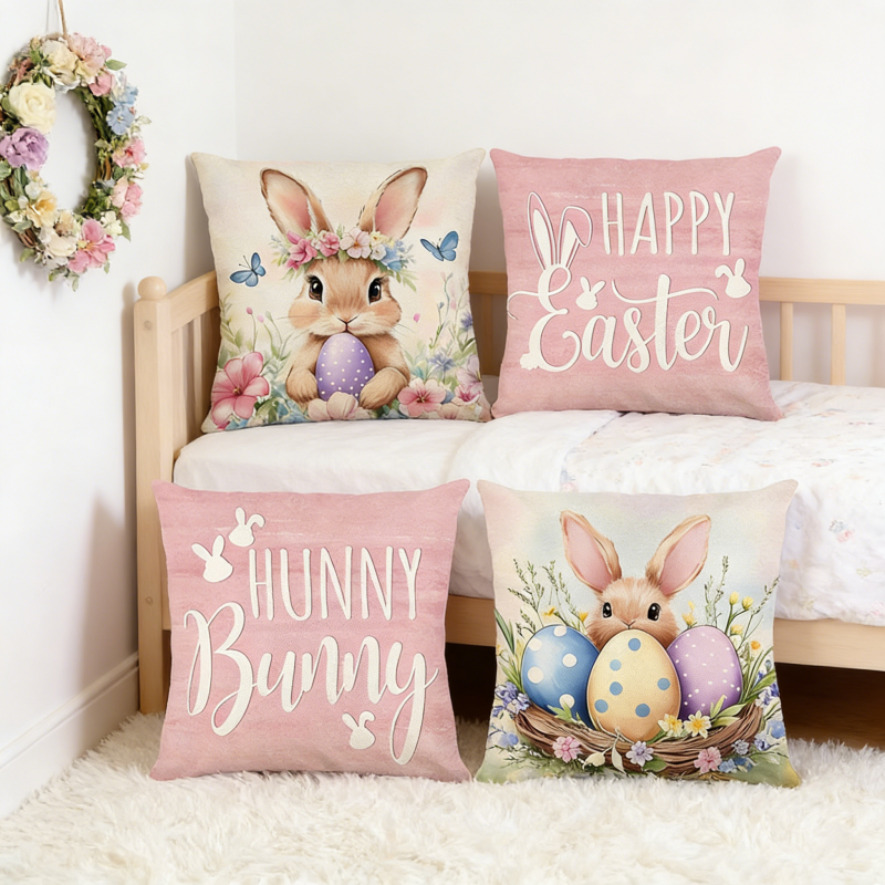 Fodera per cuscino quadrata moderna con stampa di lettere e uova di Pasqua, per divano, camera da letto, casa - Vendita calda per dropshipping