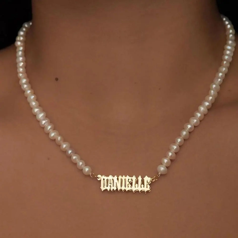 Dropshipping 18k in acciaio inossidabile personalizzato personalizzato collana di perle Design fatto da te il tuo nome collana di perle barocche