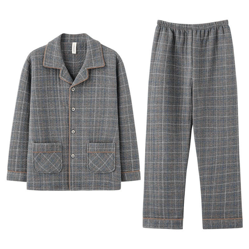 Set pigiama Dropshipping da uomo in cotone, morbido pigiama a maniche lunghe da uomo leggero con bottoni e pigiami da notte con tasche