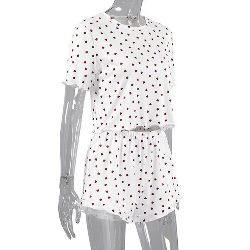 Dropshpping primavera estate Sexy Love stampato a maglia pantaloncini a maniche corte e pigiama Set da donna abbigliamento da notte morbido e traspirante