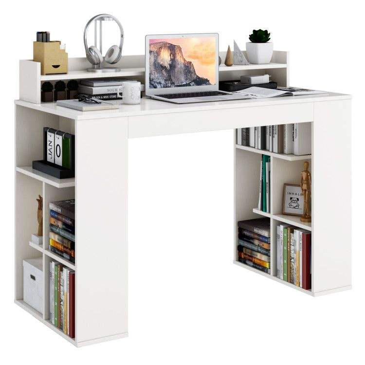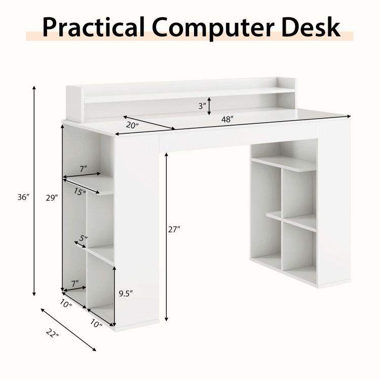 Scrivania per Computer con Doppio Ripiano a 3 Livelli e Mensola per Monitor