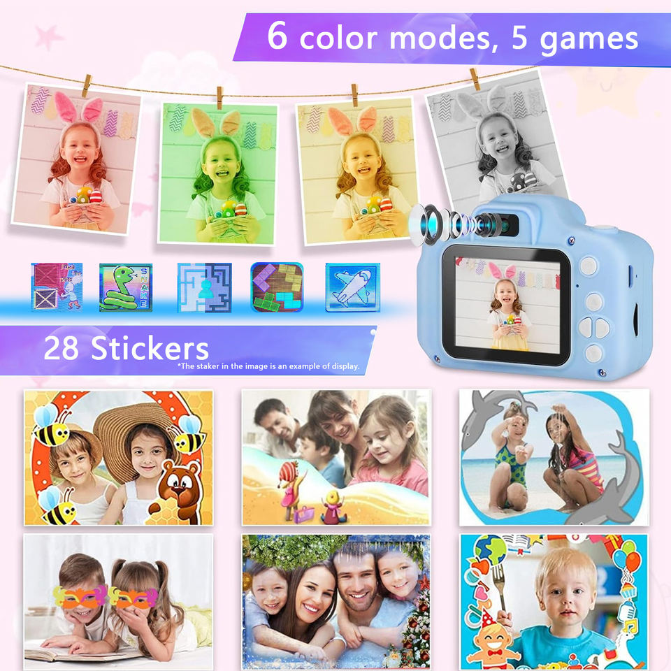Fotocamera Digitale per Bambini Impermeabile Full HD con Doppia Lente, Supporto MicroSD, Regalo di Natale e Compleanno