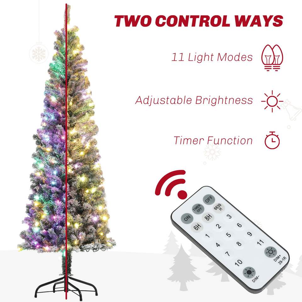 Albero di Natale Artificiale Pre-Illuminato a LED Bicolore, Decorazione Natalizia Effetto Neve con Design a Albero Sottile