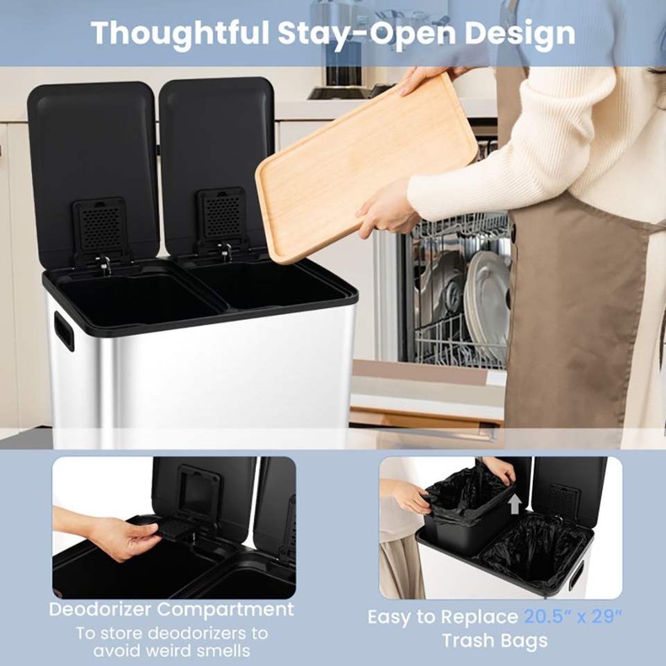Cestino per Rifiuti da Cucina a Doppio Scomparto 2 x 8 Galloni, Arredamento per Sala da Pranzo