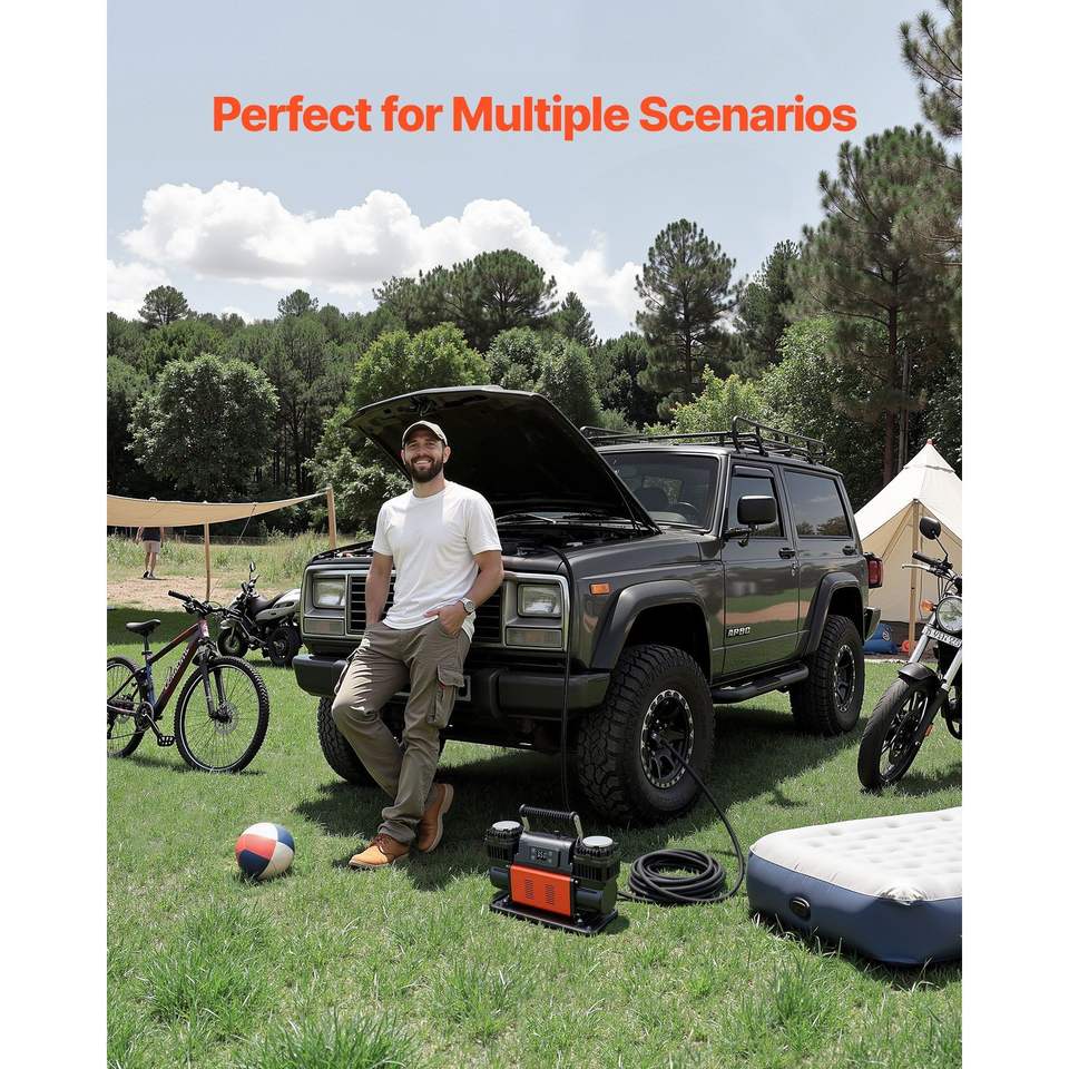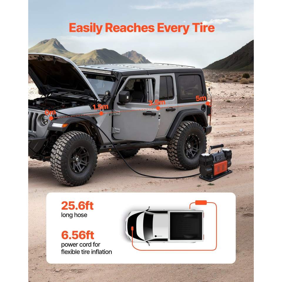 Compressore d'Aria Portatile a Doppio Cilindro 10.6CFM con Auto-Stop, 12V 150PSI, per Fuoristrada, con Display LCD Digitale