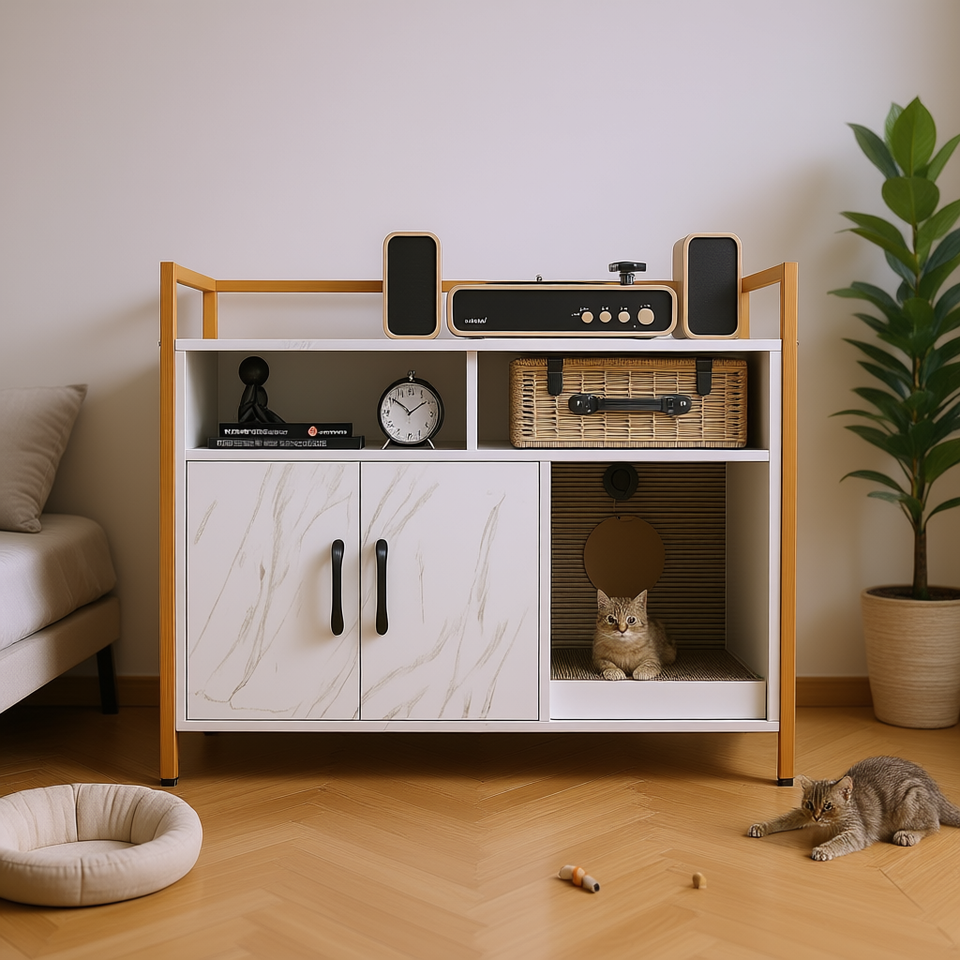 Dual-Door Hidden Cat Washroom 65L Cardboard Feline Hygiene Accessory Rectangle Manual Operation