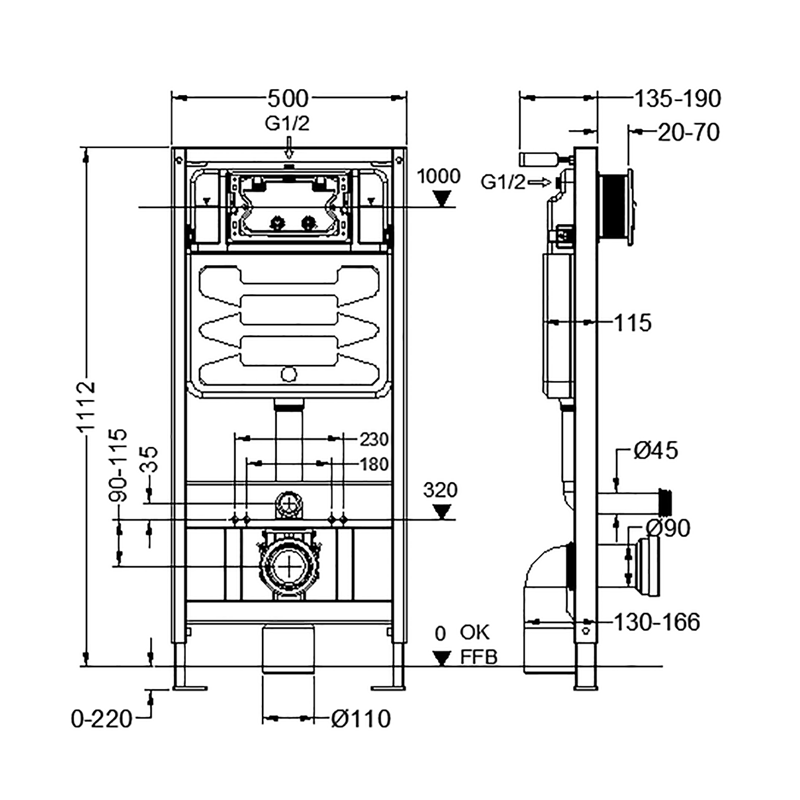 Doppio Scarico Doppia Vampate di Calore Nascosta In Parete con Telaio In Acciaio A Scomparsa Serbatoio del Wc Cisterna per parete Wc sospeso