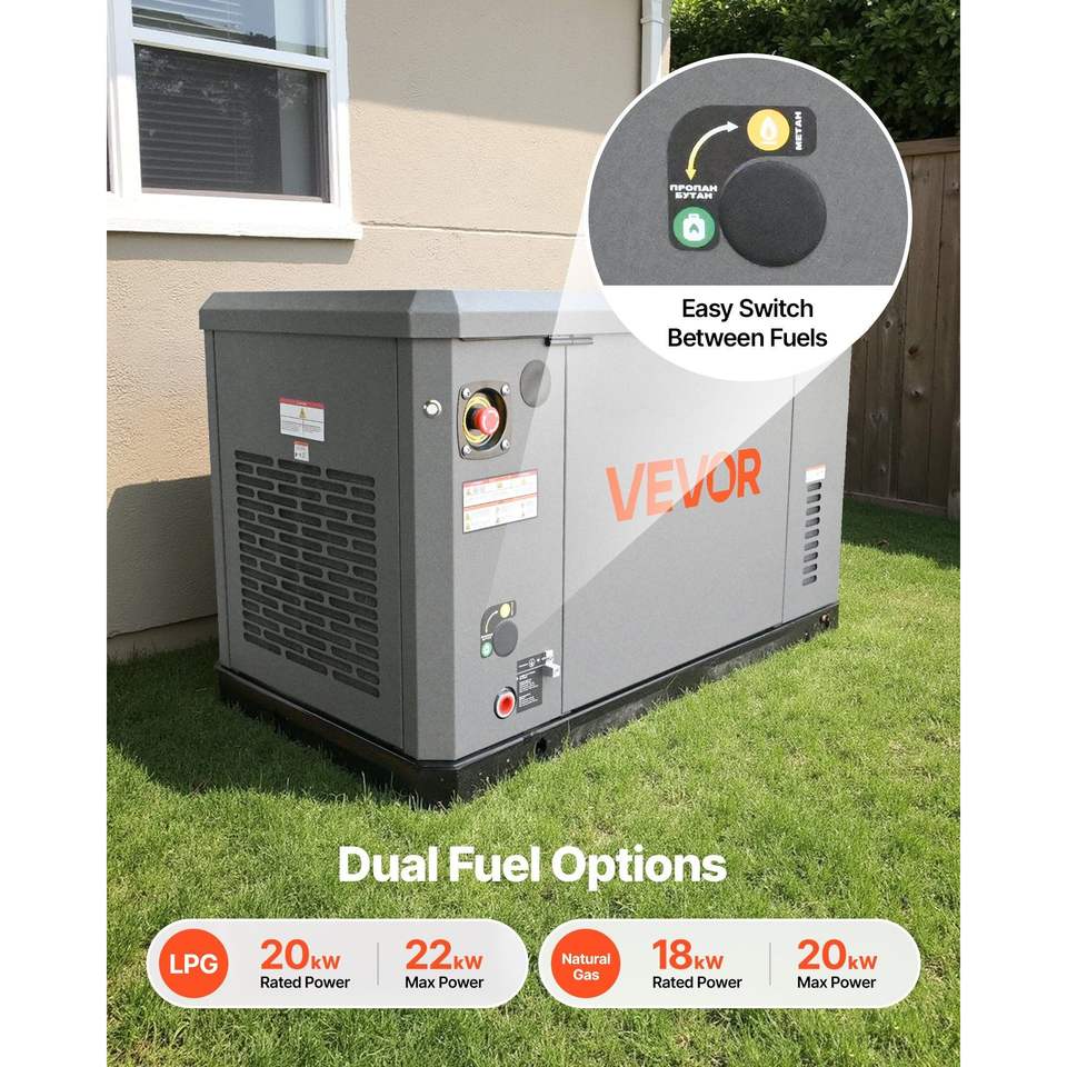 Generatore Dual Fuel da 22kW di Potenza Massima in Standby, 20kW di Potenza Massima per Tutta la Casa, Alimentazione di Emergenza per Tutta la Casa a Gas Naturale e GPL