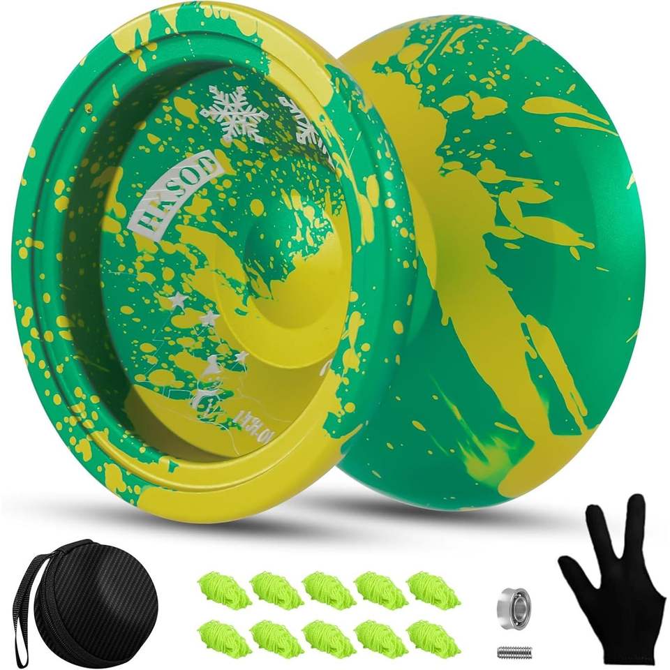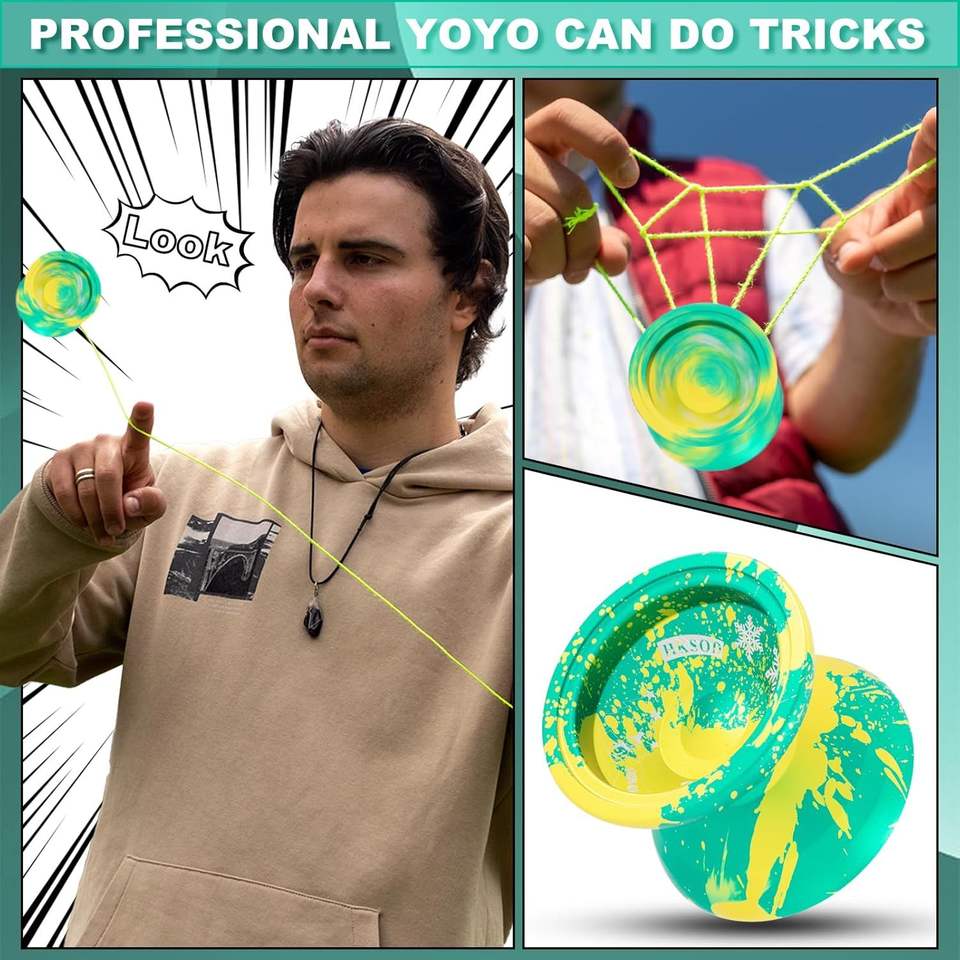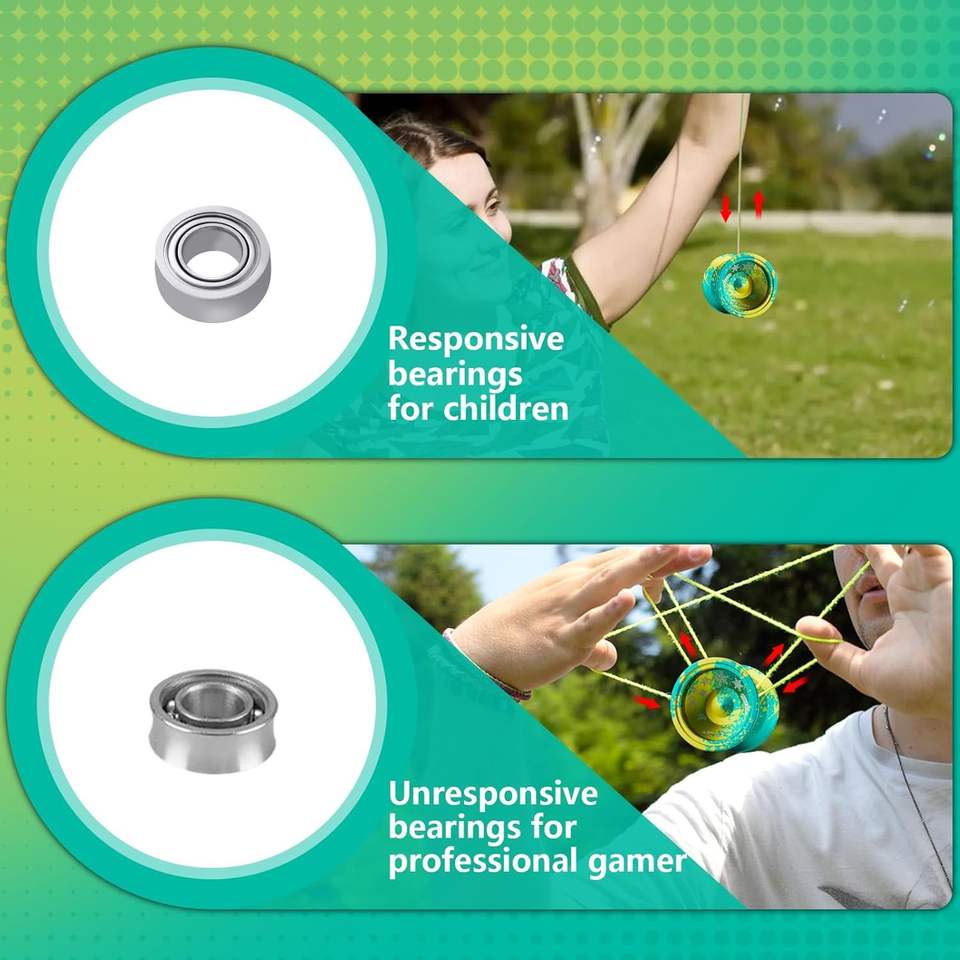 Yo-Yo Reattivo a Doppia Funzione con Cuscinetto Extra Non Reattivo, Accessorio da Gioco in Metallo con Guanto e Borsa, 10 Corde