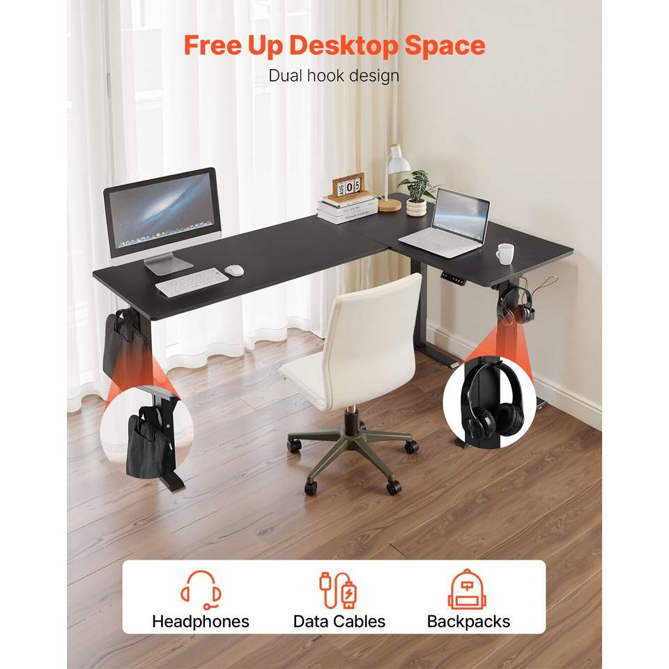 Scrivania da Gaming Angolare a L con Doppio Gancio, Regolabile Elettricamente in Altezza, in Acciaio al Carbonio, Tavolo per Computer, Scrivania da Ufficio Alta