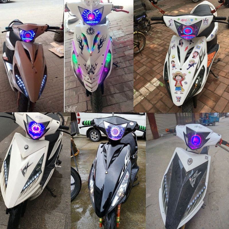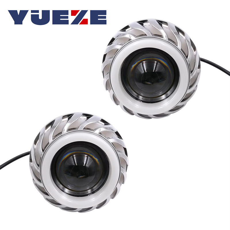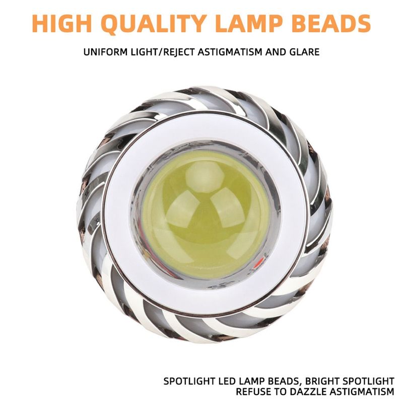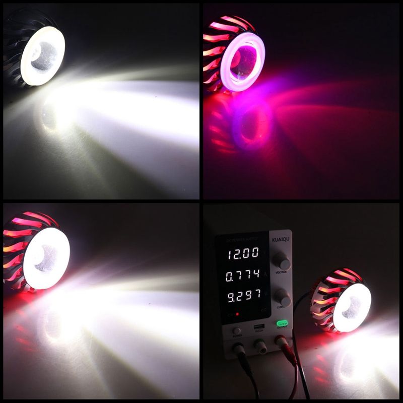 Faro per Auto e Moto con Doppia Lente LED Angel Devil Eyes, Proiettore con Fascio Alto/Basso, Luce Stroboscopica, DRL, Lampada Halo