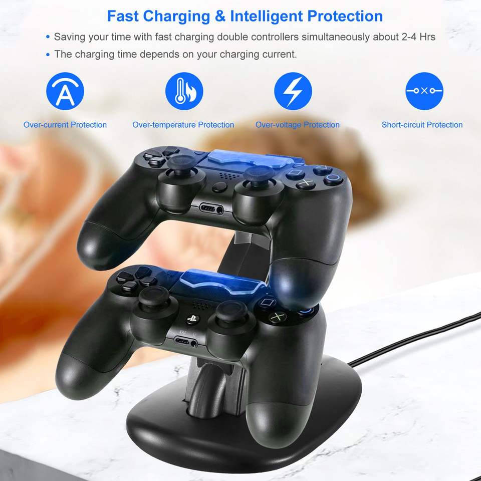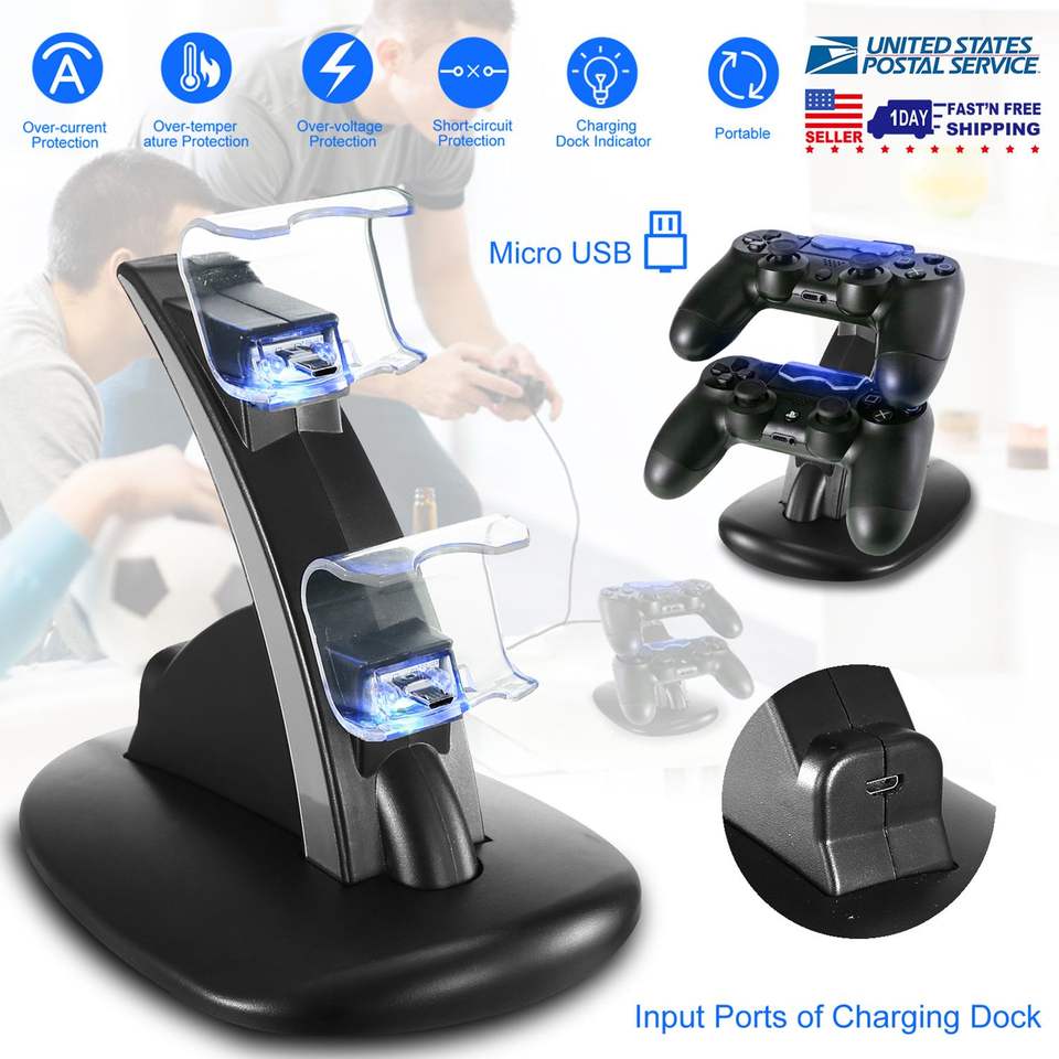 Stazione di Ricarica Doppia Micro USB per PS4 Pro e PS4 Slim con Indicatore Blu, Supporto di Ricarica per Controller e Joystick