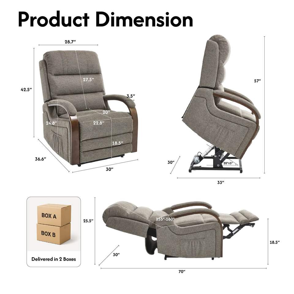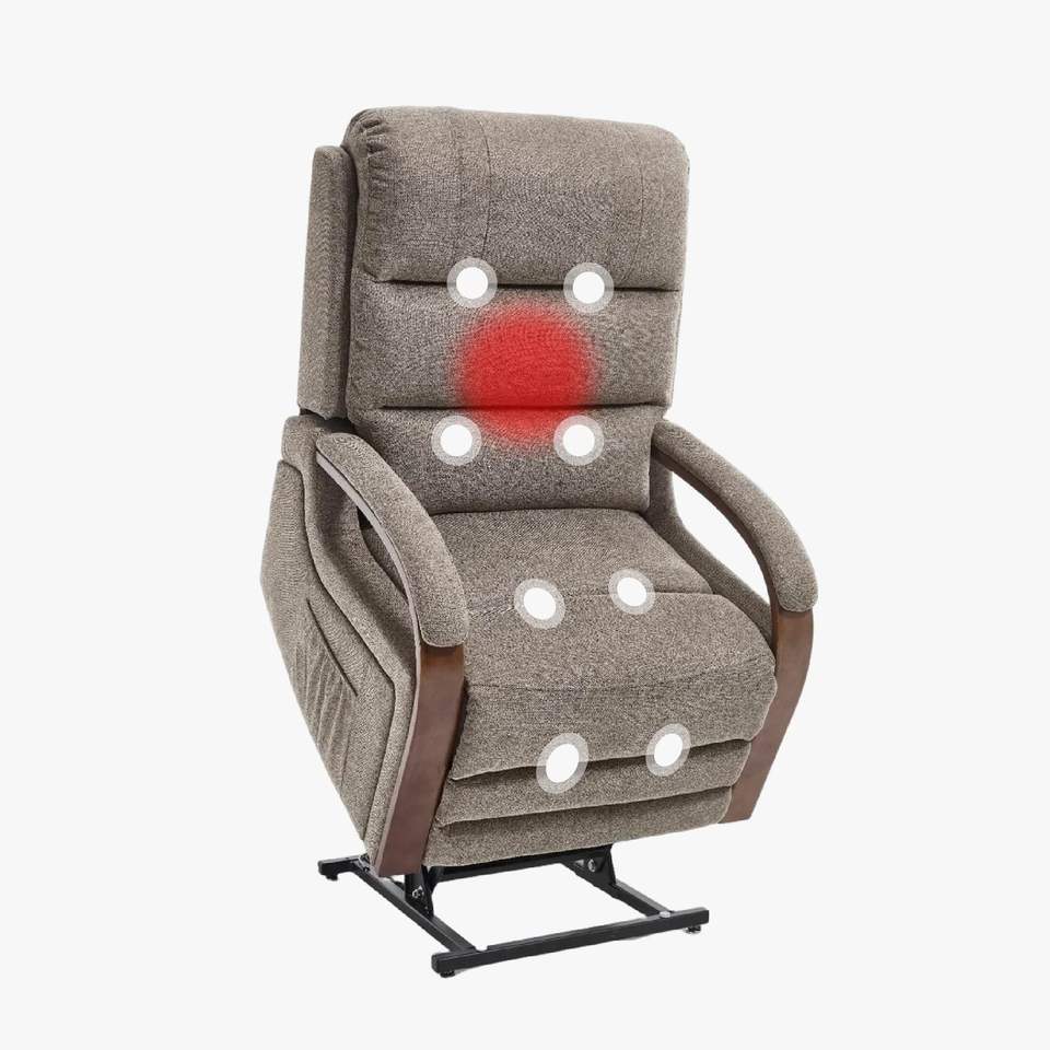 Poltrona Reclinabile Elettrica a Doppio Motore con Funzioni di Massaggio e Riscaldamento, Rivestimento in Velluto Egiziano per Anziani