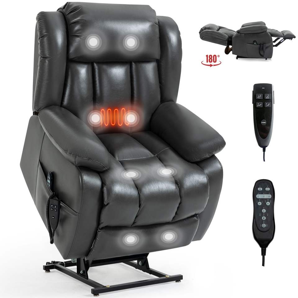 Dual Motor Leatheraire Grey Power Lift Recliner Chair Infinite Position 350 LBS 8 Point Vibration Electric Medium Size Recliner