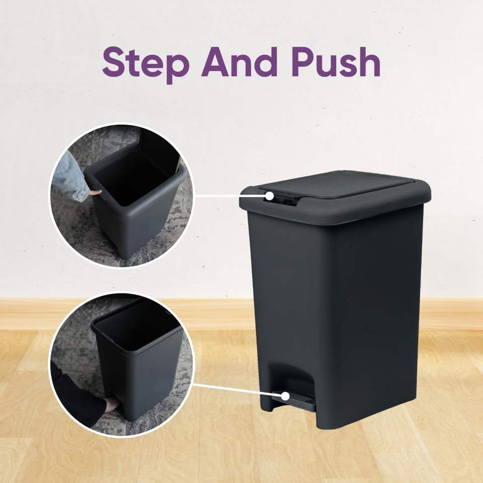Cestino per Rifiuti con Apertura Doppia da 6,5L, Design Sottile, Finitura Opaca Liscia, Plastica Nera Resistente (24x18x29,2 cm) - per Organizzazione Cucina