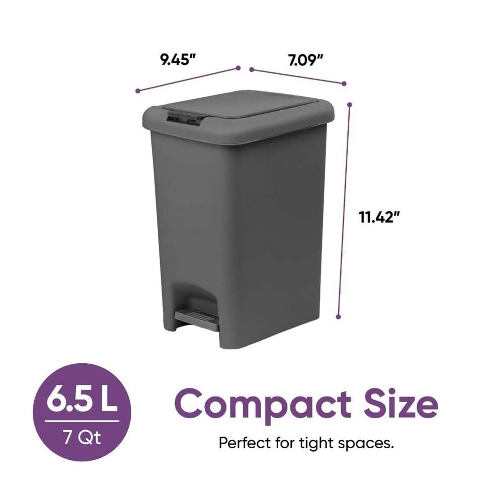 Cestino per Rifiuti con Doppia Apertura 6.5L, Design Sottile, Apertura a Pressione, Finitura Opaca Liscia, Durevole, 9.5"x7"x11.5", in Plastica Grigia