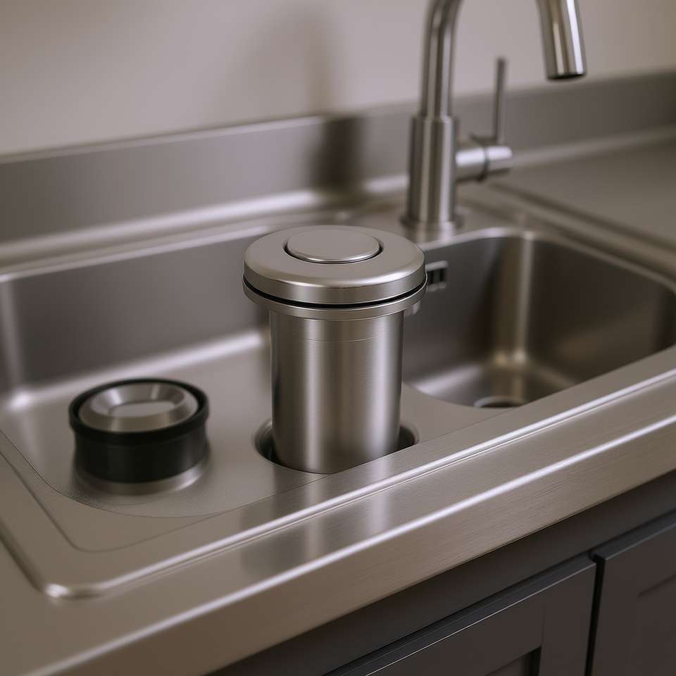 Dual Outlet Sink Top Air Switch 2.5 Inch Kit For Garbage Disposals Stainless Steel Satin Nickel