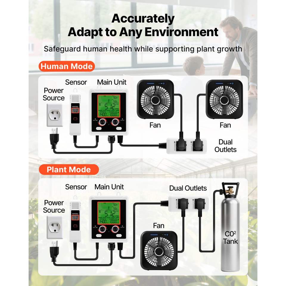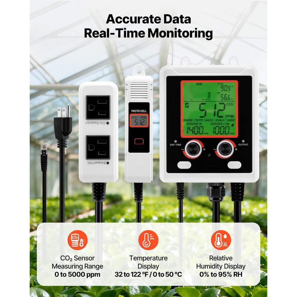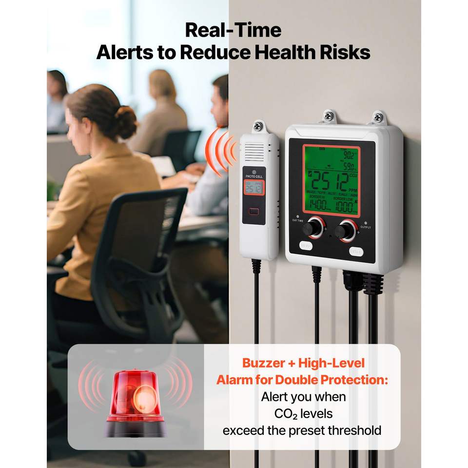 Misuratore di CO2 a Doppia Uscita con Funzione di Rilevamento Giorno/Notte, Monitor per la Qualità dell'Aria