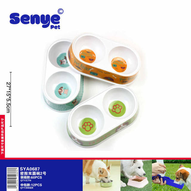 Dual Pet Bowl Set 27x15x5.5cm Multicolor Eco-Friendly & Portable Melamine Automatic Food and Water Feeder for Dogs and Cats