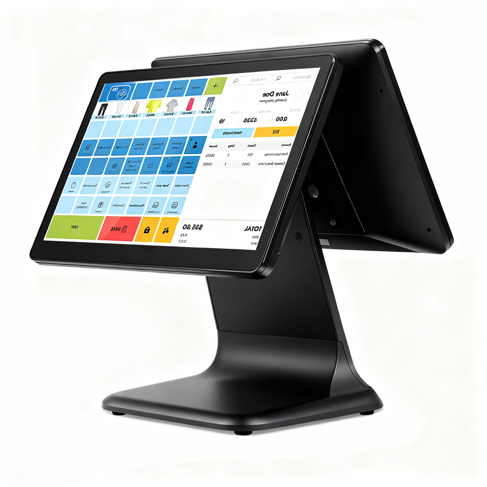 Registratore di Cassa POS All-in-One a Doppio Schermo, Core I3-4005U, 8GB RAM, 256GB SSD, Android 10, Touch Capacitivo a 10 Dita