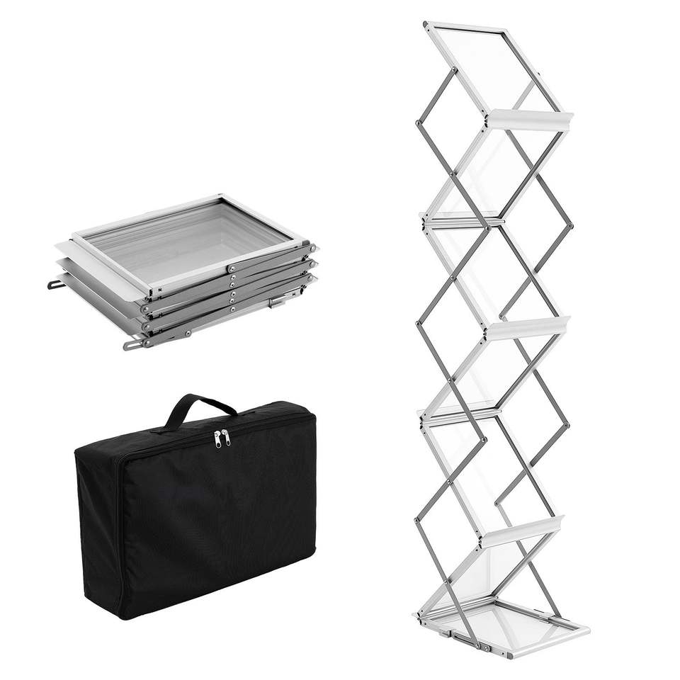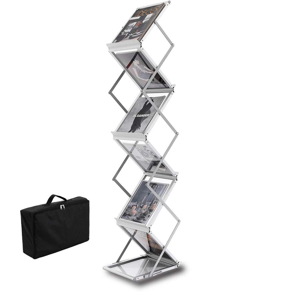 Espositore Pieghevole Bifacciale a 6 Tasche per Riviste, Stand Pop-Up per Brochure con Porta Cataloghi