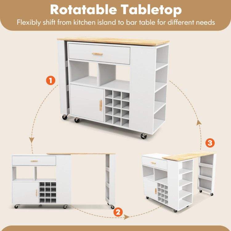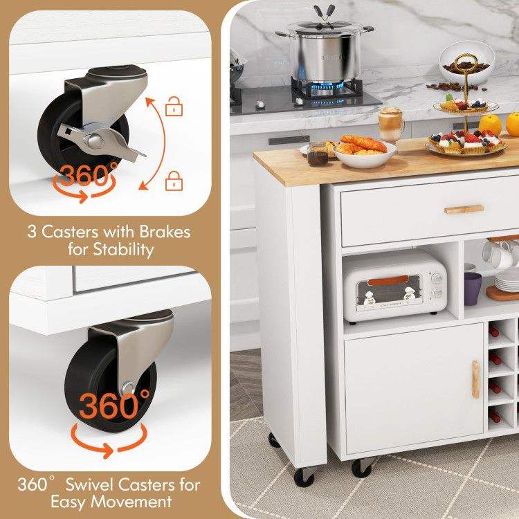 Carrello da Cucina Pieghevole Reversibile a Doppio Lato con Portabottiglie e Portaspezie Integrati