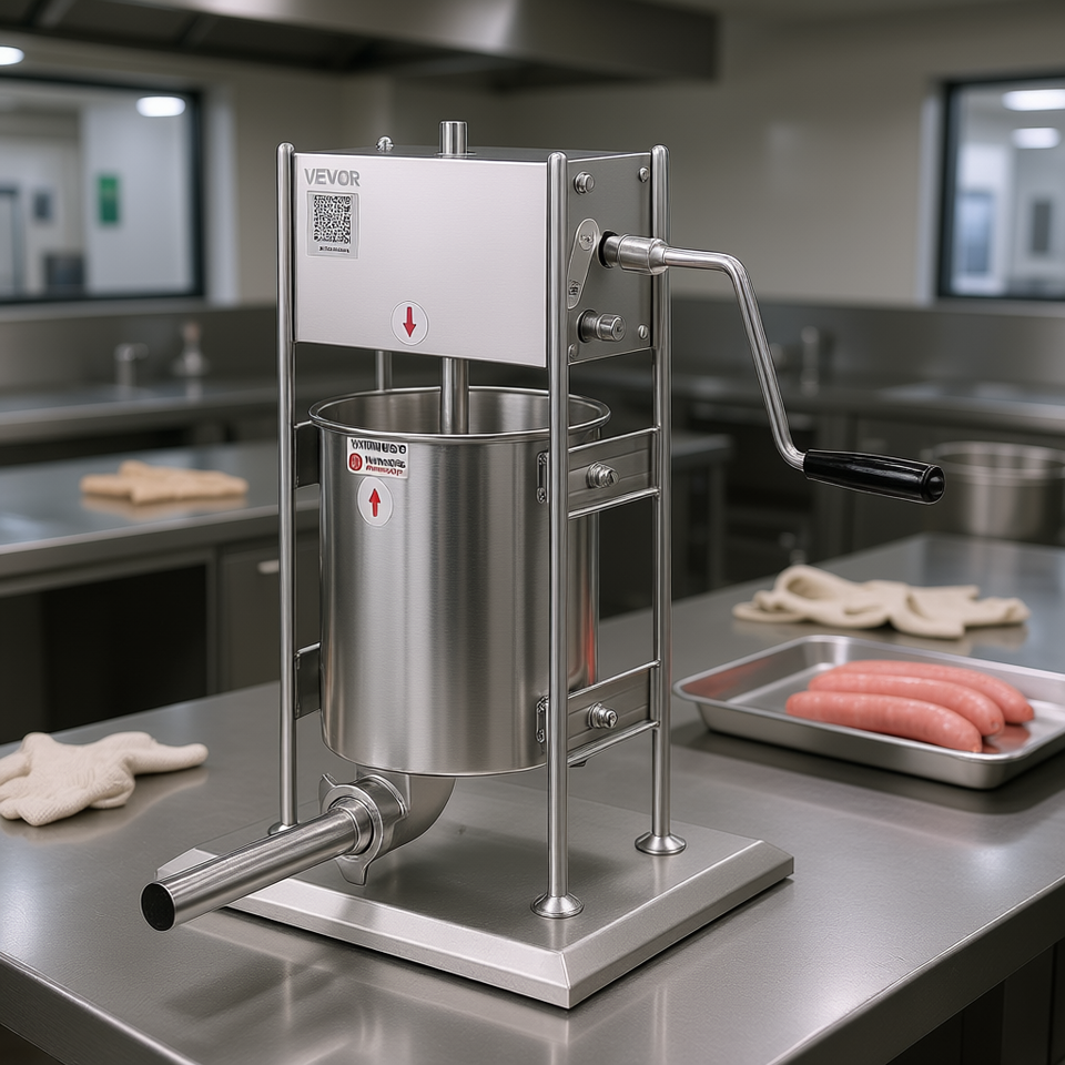Insaccatrice Manuale in Acciaio Inox da 10 L con 5 Tubi, Design Verticale per Uso Commerciale