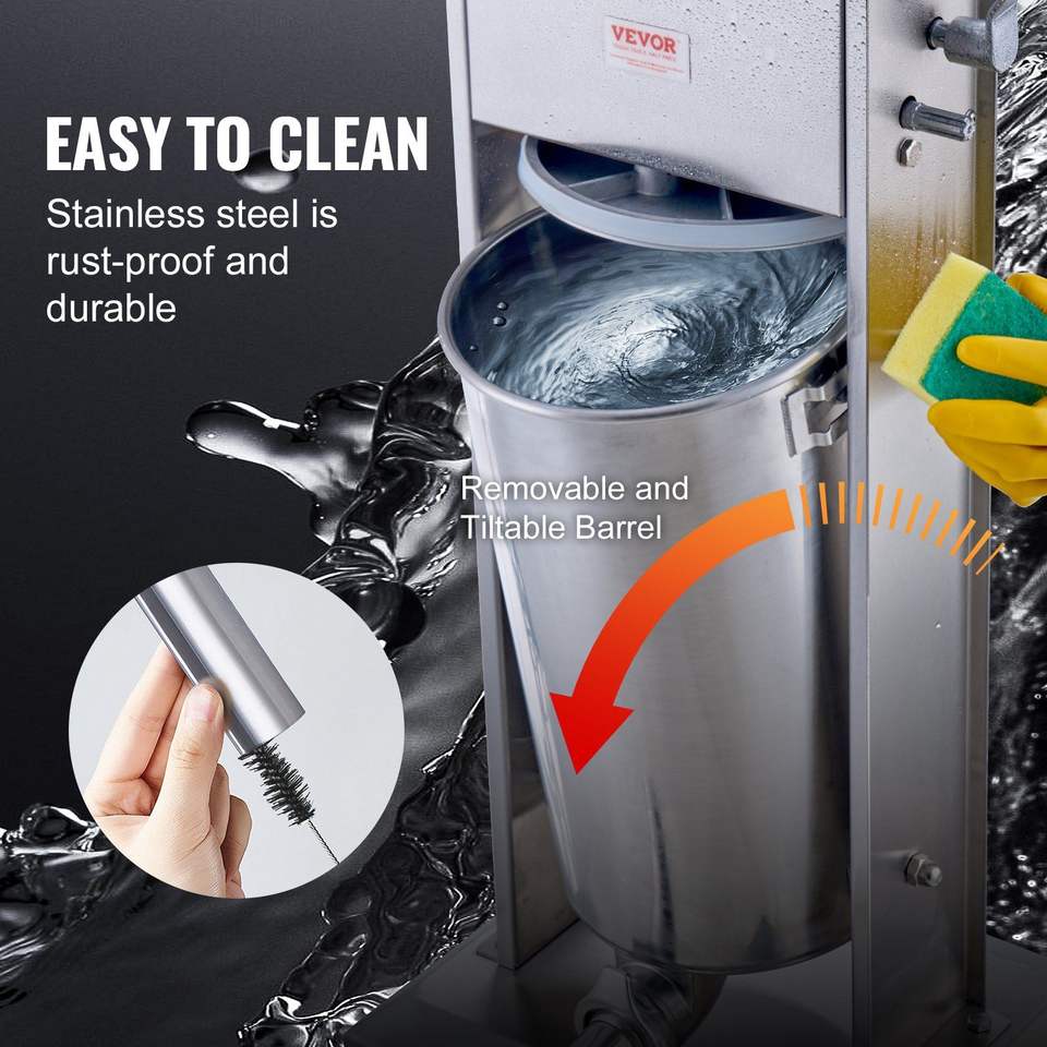Insaccatrice Manuale a Doppia Velocità 15L/30LBS, Macchina Verticale per Insaccare Carne in Acciaio Inox 304 per Alimenti