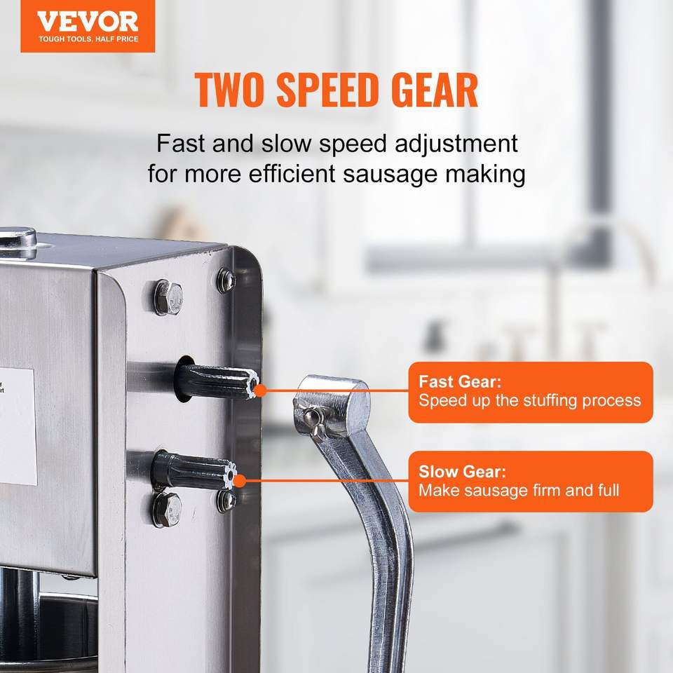 Insaccatrice Manuale a Doppia Velocità 7 L/15 LBS, Insaccatrice Verticale per Carne in Acciaio Inox 304 per Uso Alimentare, per la Preparazione di Salsicce