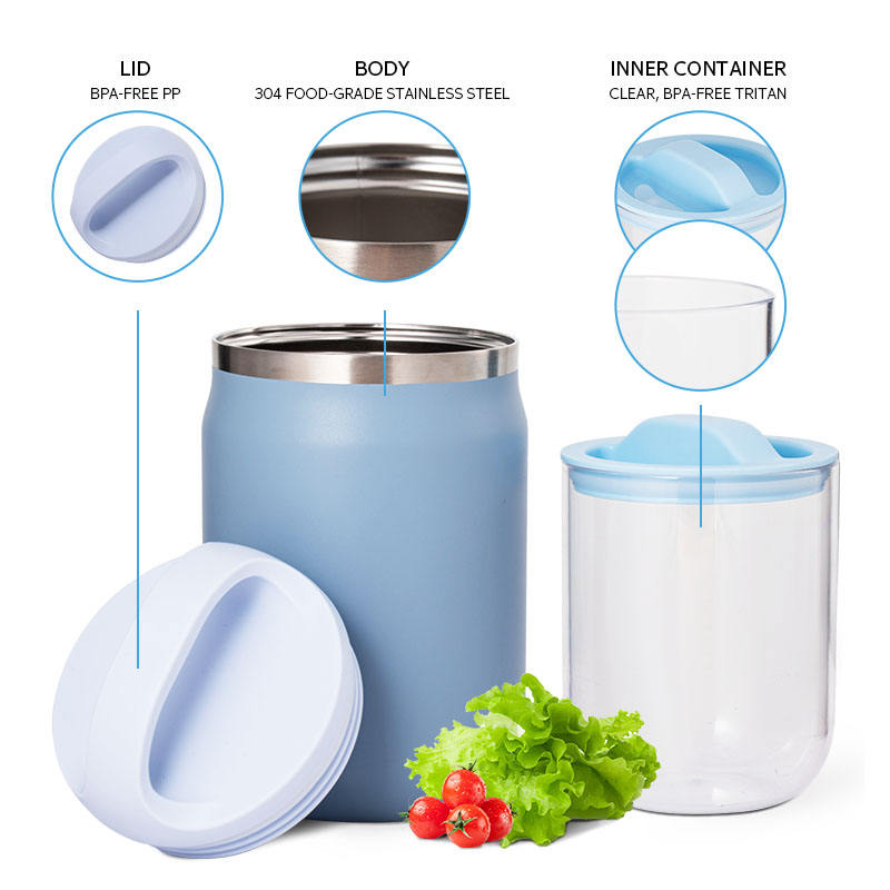Product Name:stainless steel lunch box 600ml double wall food jar with glass inner