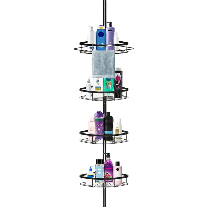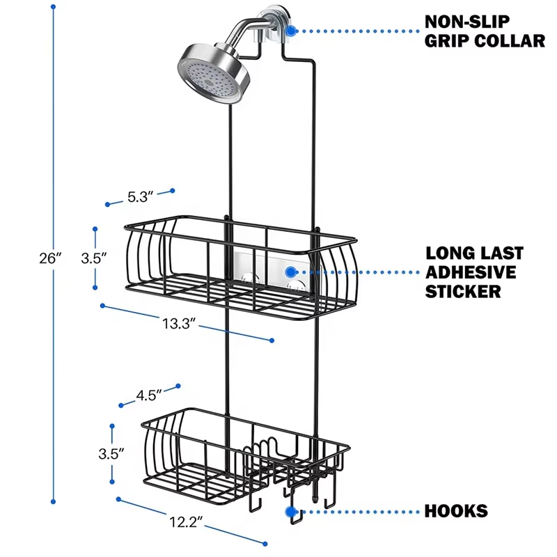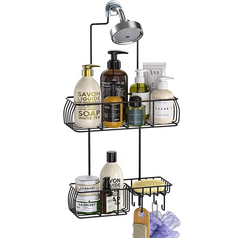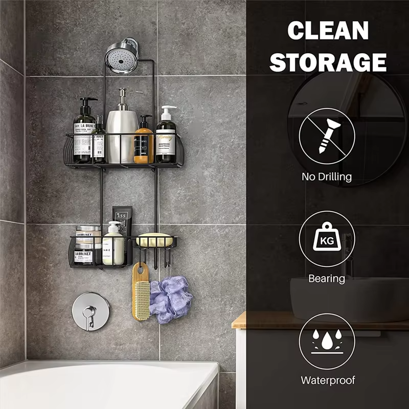 Mensola doccia in acciaio inossidabile a doppio livello Design moderno con supporto ad angolo per il bagno appesa sopra la porta con ganci