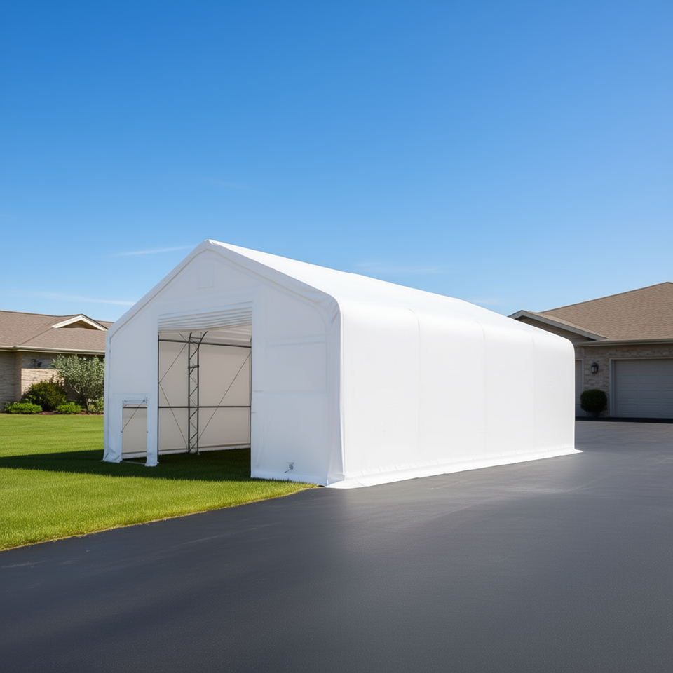 White Dual Truss Storage Shelter 30 X 40 Heavy Duty PVC Cover Parking Equipment