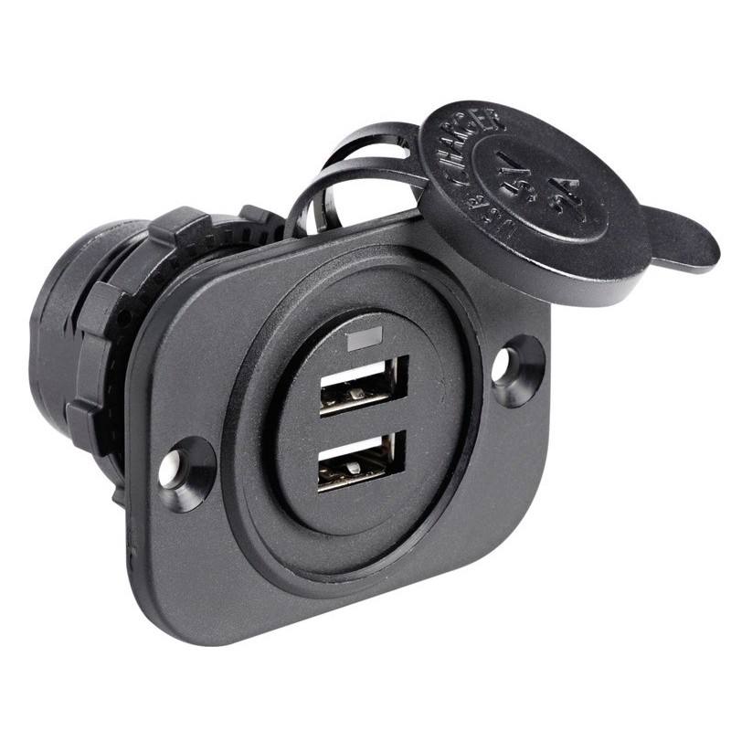 Dual USB Socket Panel Black 12-24V for Autos-Auto Electronics Accessory